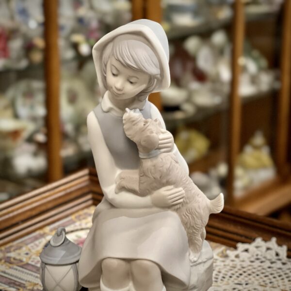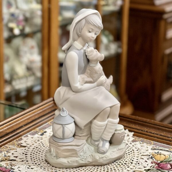 Lladro Figurine #4910 ‘Girl Sitting with Dog& Lantern’ Made in Spain